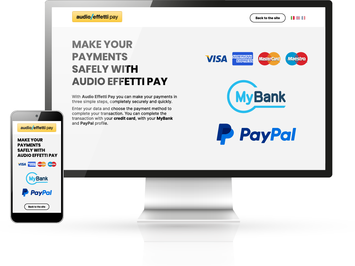 With Audio Effetti Pay you can make your payments in three simple steps, in a completely safe and fast way.