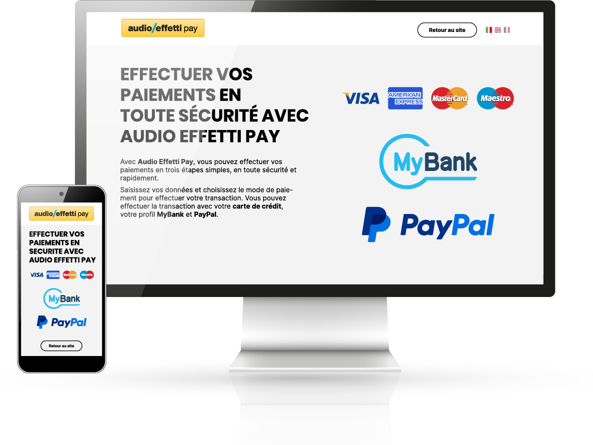 Avec Audio Effetti Pay, vous pouvez effectuer vos paiements en trois étapes simples, de manière totalement sûre et rapide.